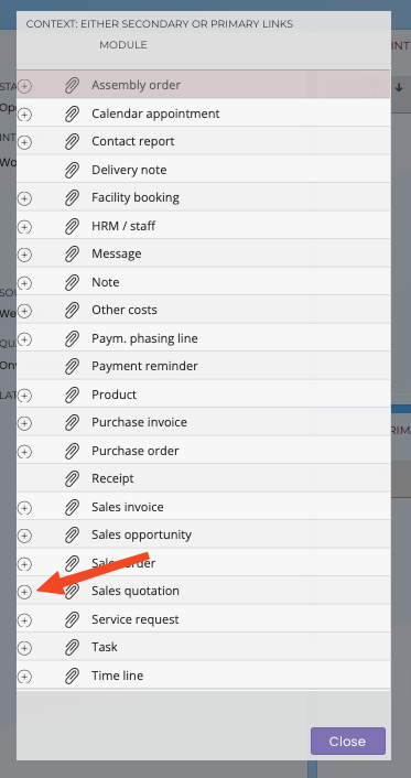 Go back to your existing lead, click on the paperclip in the top right and click on the small + icon next to Sales quotation