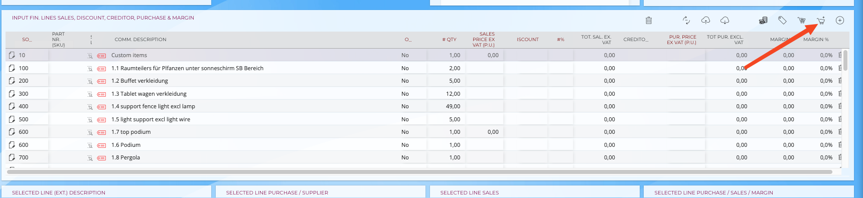 - Add the necessary products that the customer might want using the shopping cart in the top right of the relevant widget